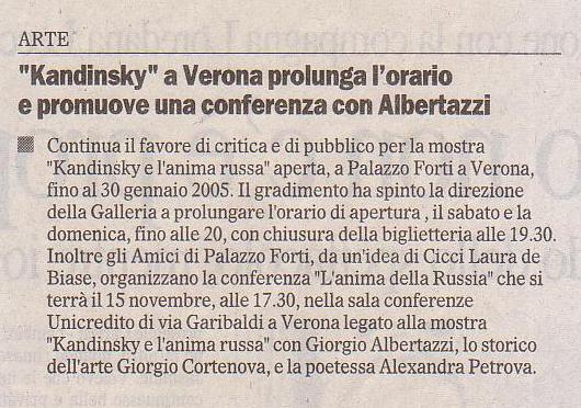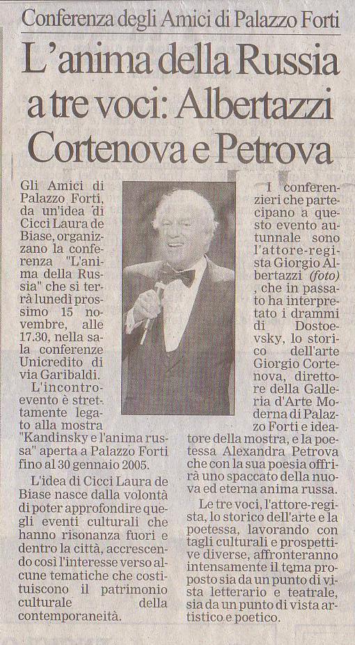 Incontro evento strettamente legato alla mostra “Kandinsky e l’anima russa. ” Galleria d’arte moderna Palazzo Forti (13/11/2004-30/01/2005)