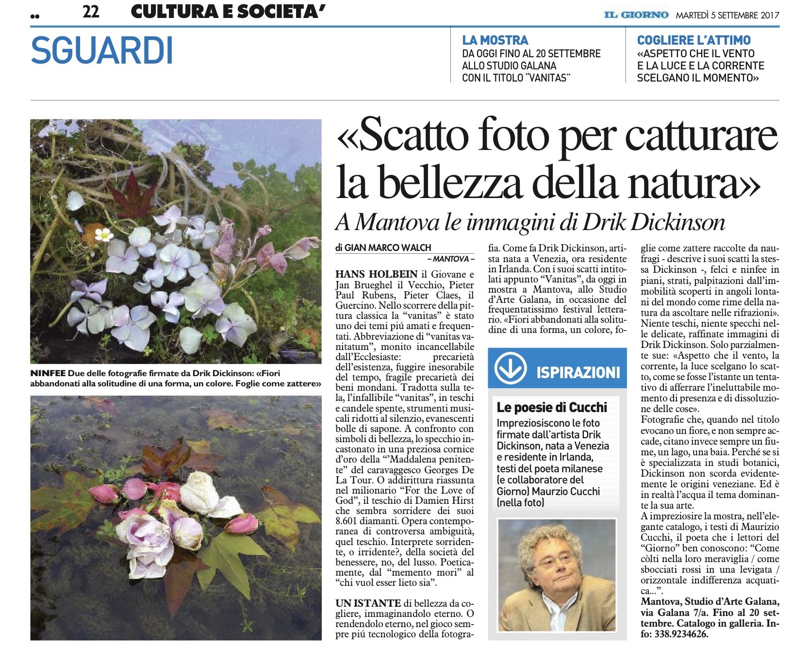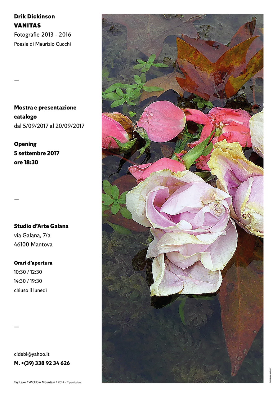 - VANITAS, Fotografie 2013-2016. (05-16/09/2017). Personale. Galleria Studio Galana, Mantova. Presentazione del catalogo con poesie di Maurizio Cucchi. >>leggi recensione del Giorno del 5/9/17